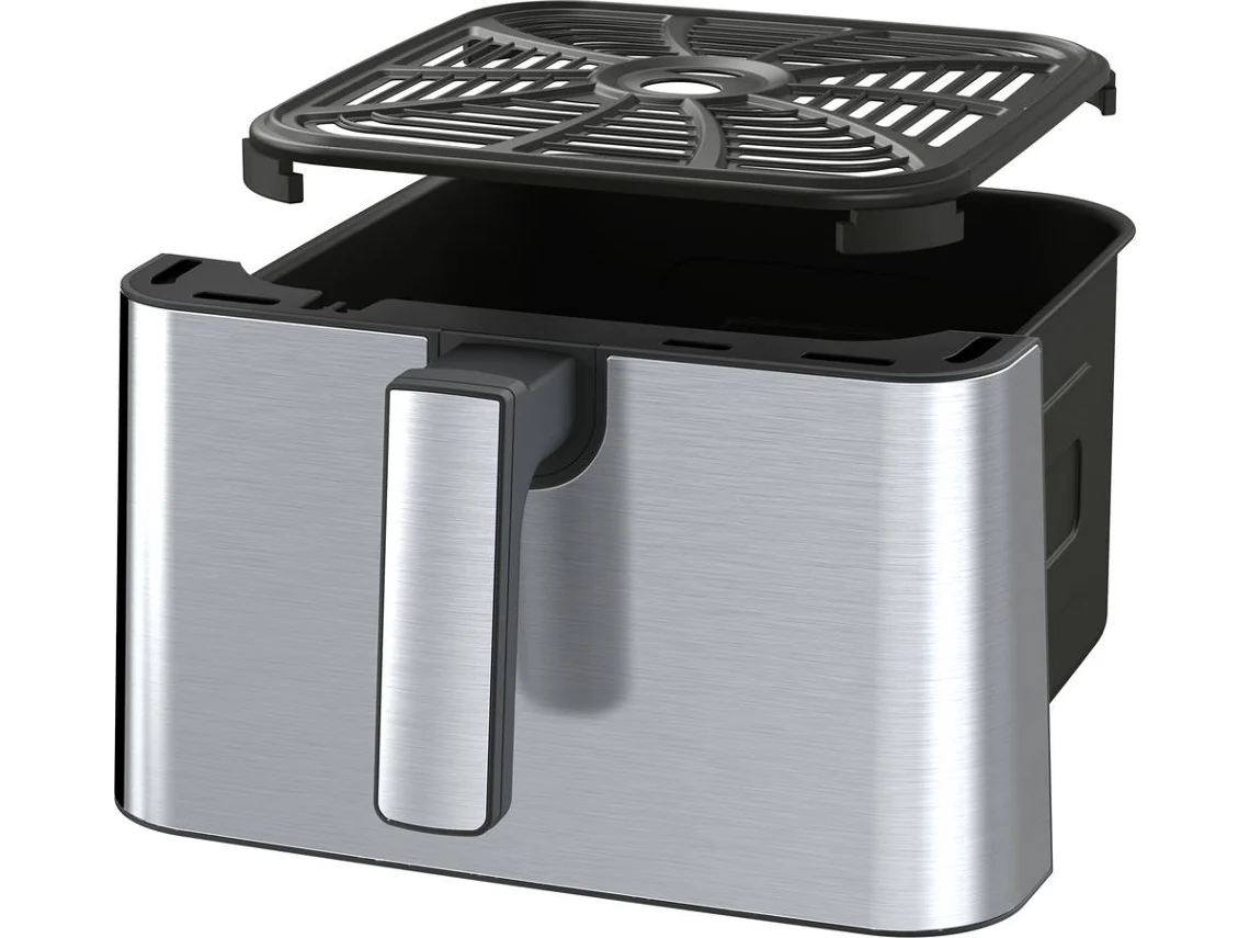 - Pantalla digital con 12 programas preestablecidos, incluida la función de descongelación y mantenimiento del calor; temporizador de 60 minutos con desconexión automática; temperatura regulable hasta 200°C; revestimiento antiadherente para facilitar la limpieza; sin BPA; pies antideslizantes.