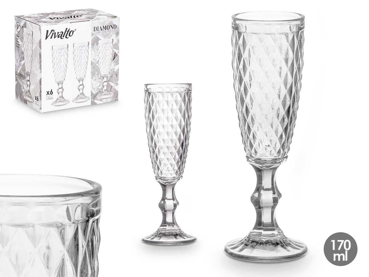 • Pack 6 copa cava Diamante Transparente 170ml