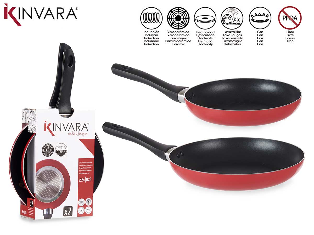 PACK 2 Sartenes aluminio 24/28 CM Rojo