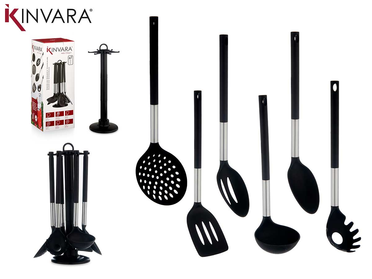 PACK 7 pcs Utensilios cocina Negro & Silver