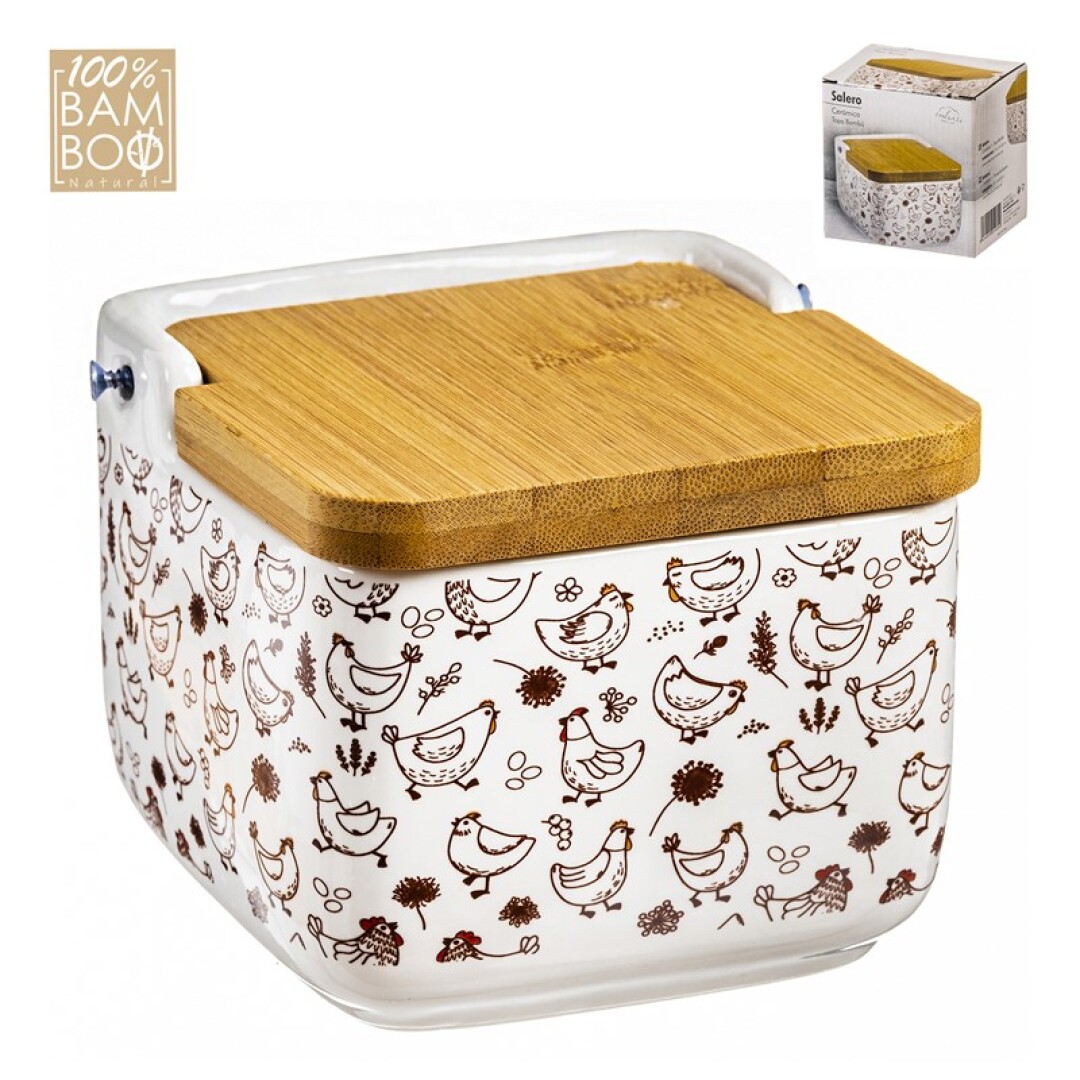 Salero cerámica poulets con tapa de bambú
