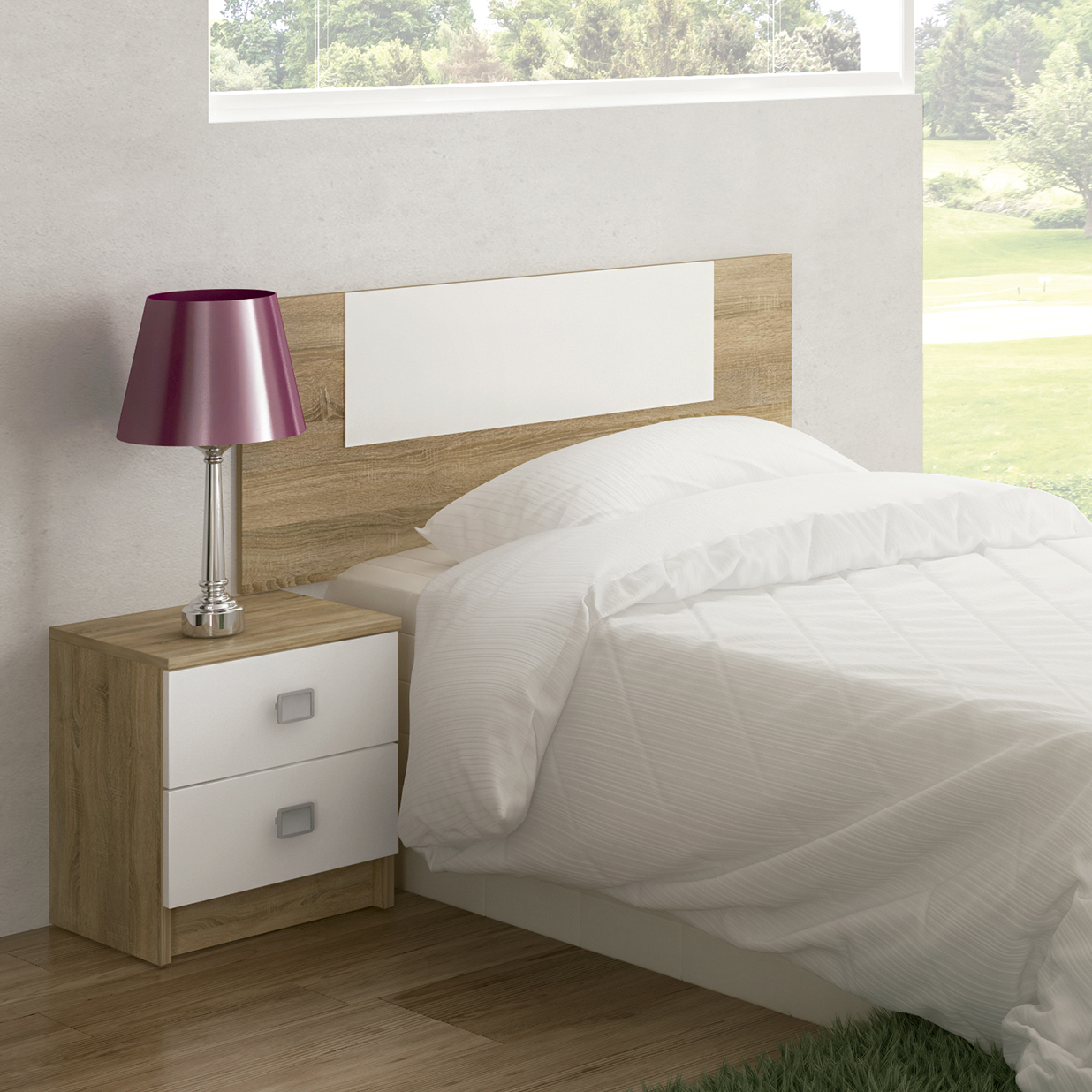 - El cabezal es de color Cambria y Blanco, lo que hace que el mueble sea completamente moderno y de un toque de diseño a tu espacio.