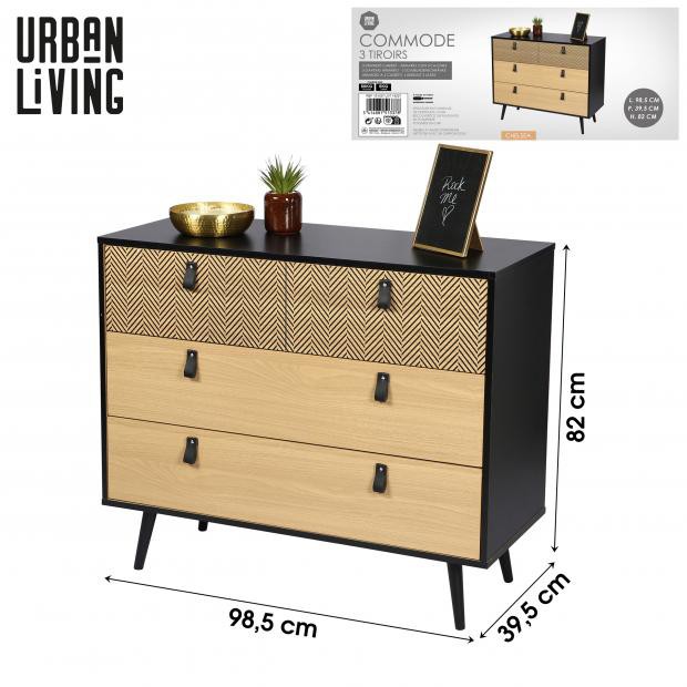 - Cómoda 3 cajones decorados con mango de cuero Chelsea