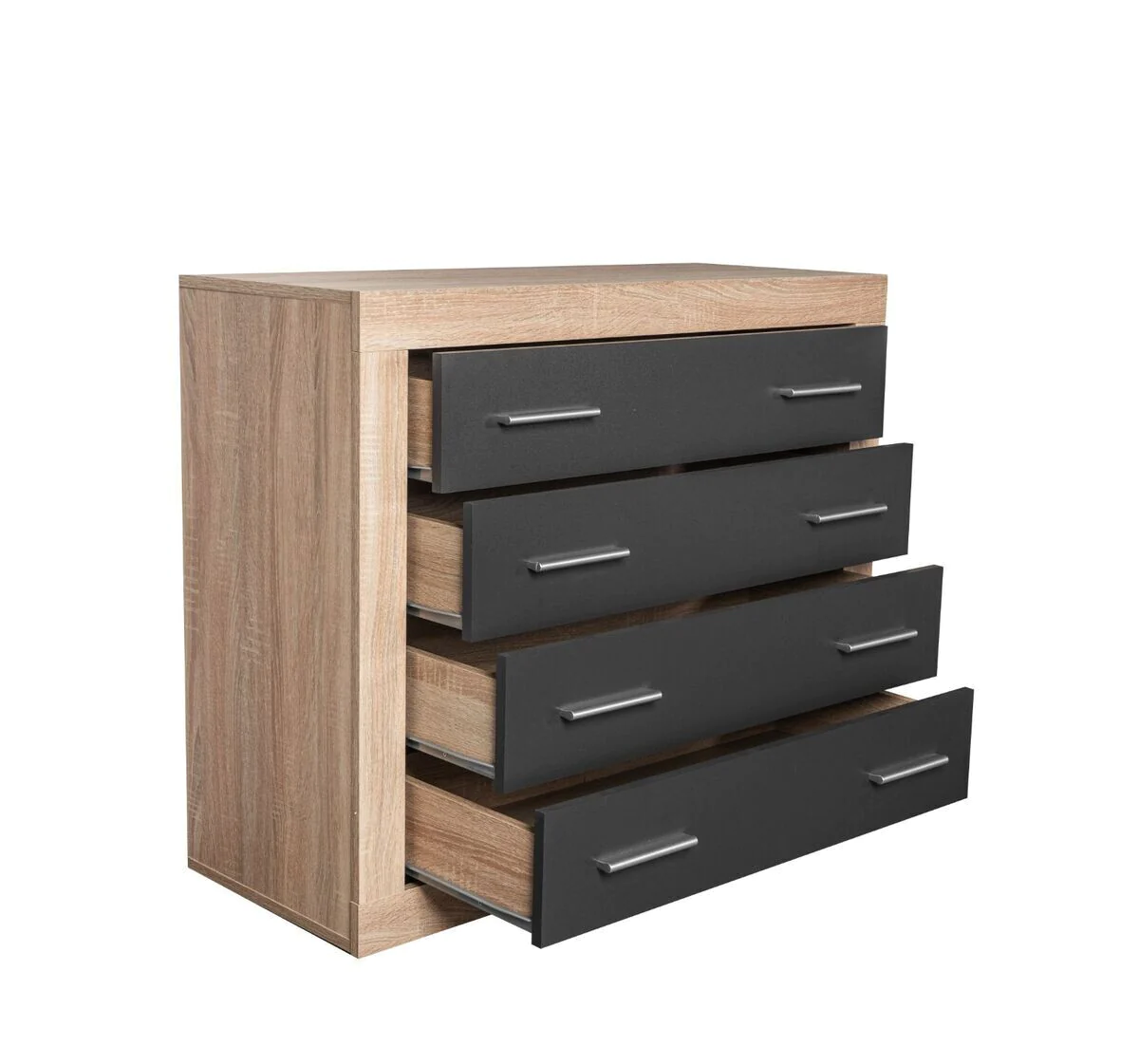 - Los cuatro cajones de la cómoda Lara, se deslizan suavemente por sus guías metálicas de fácil apertura.