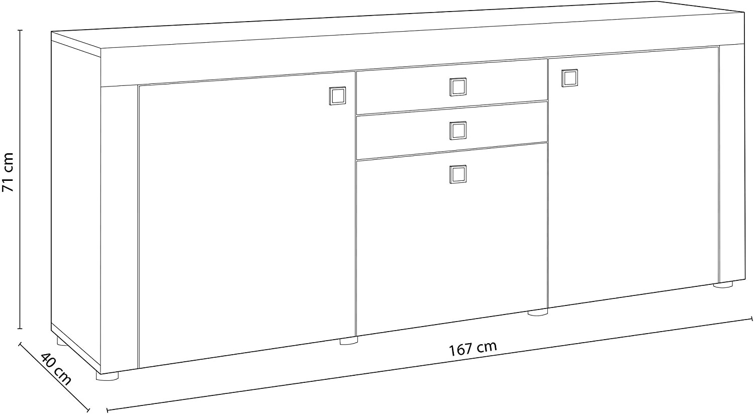 • El aparador Julieta tiene tres puerta y dos cajones.