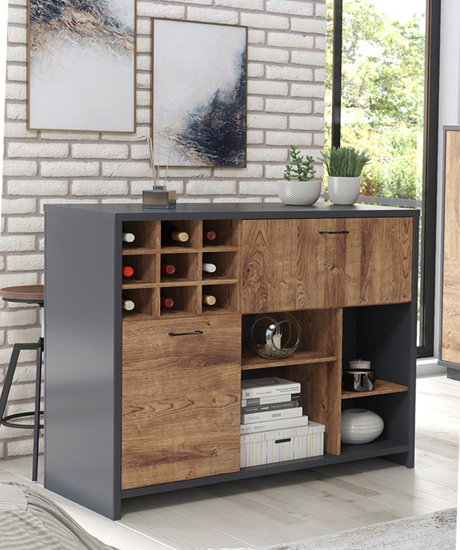 Buffet con botellero Mod. Europa Grafito/Roble