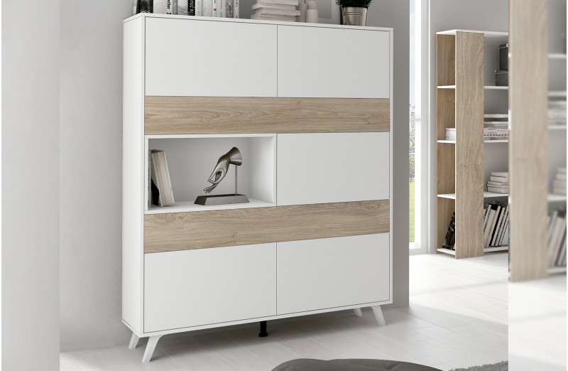 • Con gran capacidad de almacenaje, dispone de cinco espacios ocultos y un sexto visto que oxigena el conjunto.