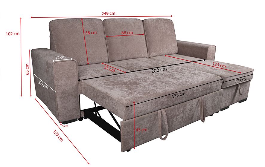 - Convertible en cama con sistema de apertura inferior extraíble.